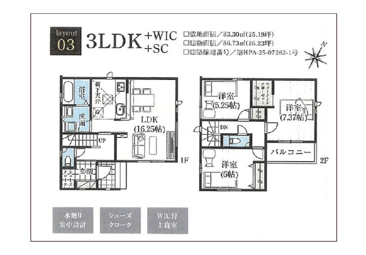 | 建築確認番号 | 第HPA-25-07260-1号、他 | 駐車スペース | 1台(カースペース) |