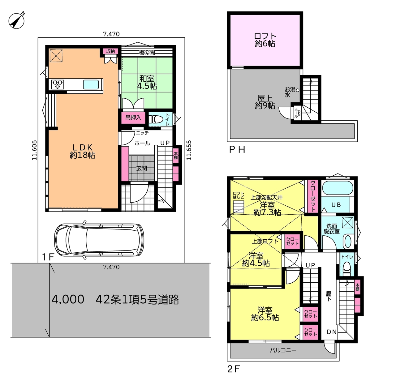 | 間取 | 4LDK (LDK18帖、和室4.5帖、洋室6.5帖、洋室4.5帖、洋室7.3帖) | ||