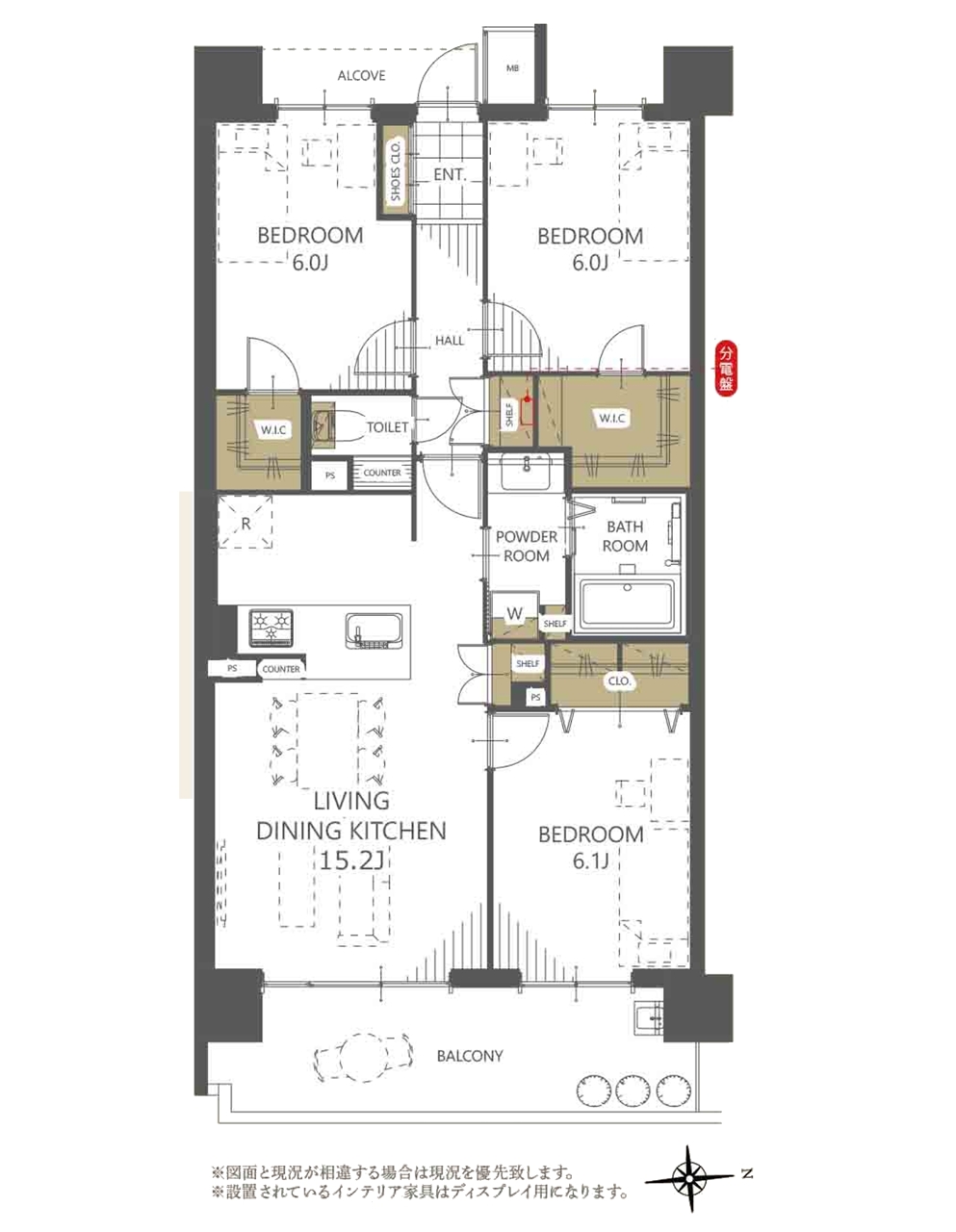 | 間取 | 3LDK (LDK15.2帖、洋室6.1帖、洋室6帖、洋室6帖) | ||