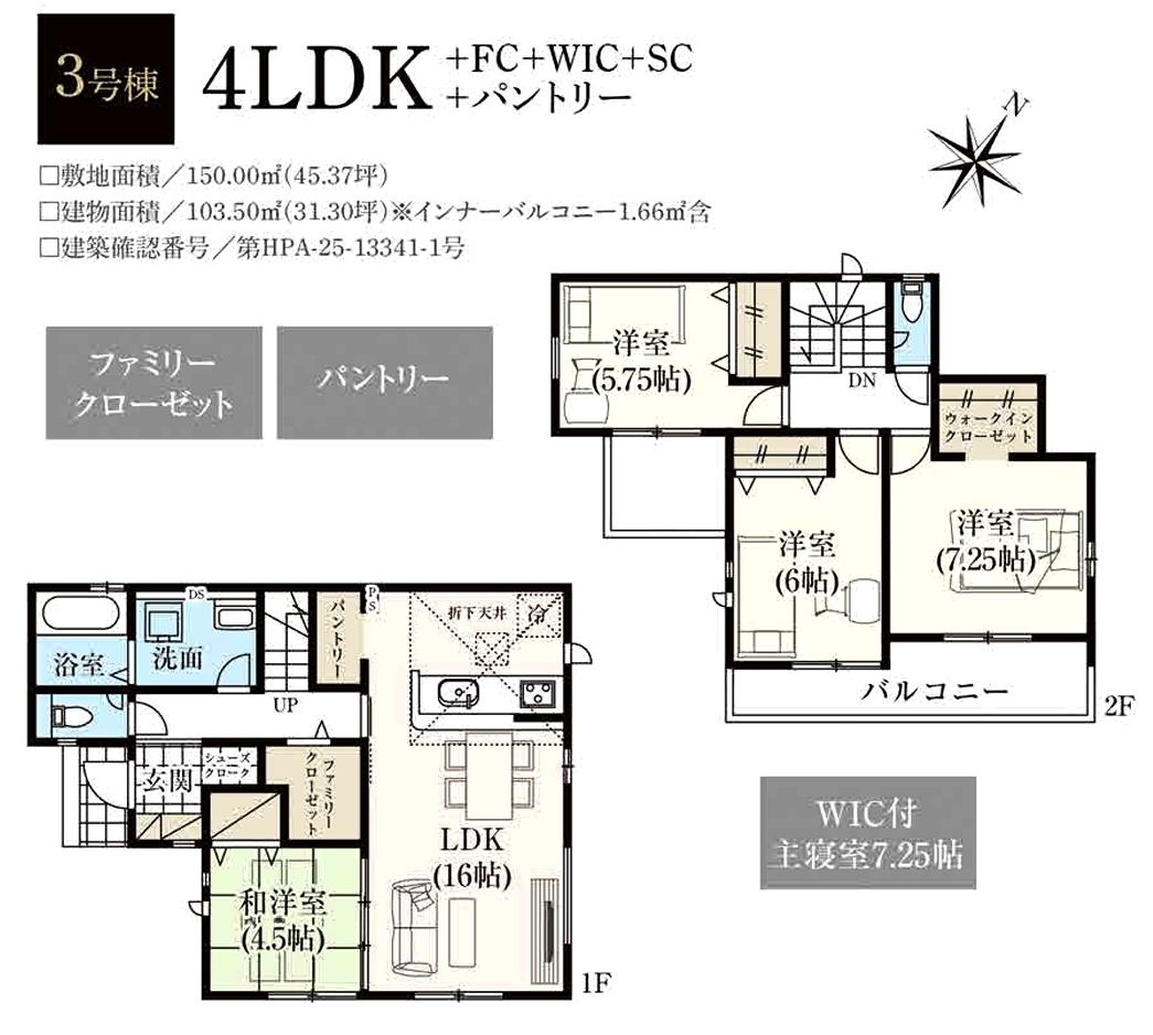 | 建築確認番号 | 第HPA-25-13341-1号 | 駐車スペース | 2台(カースペース) |
