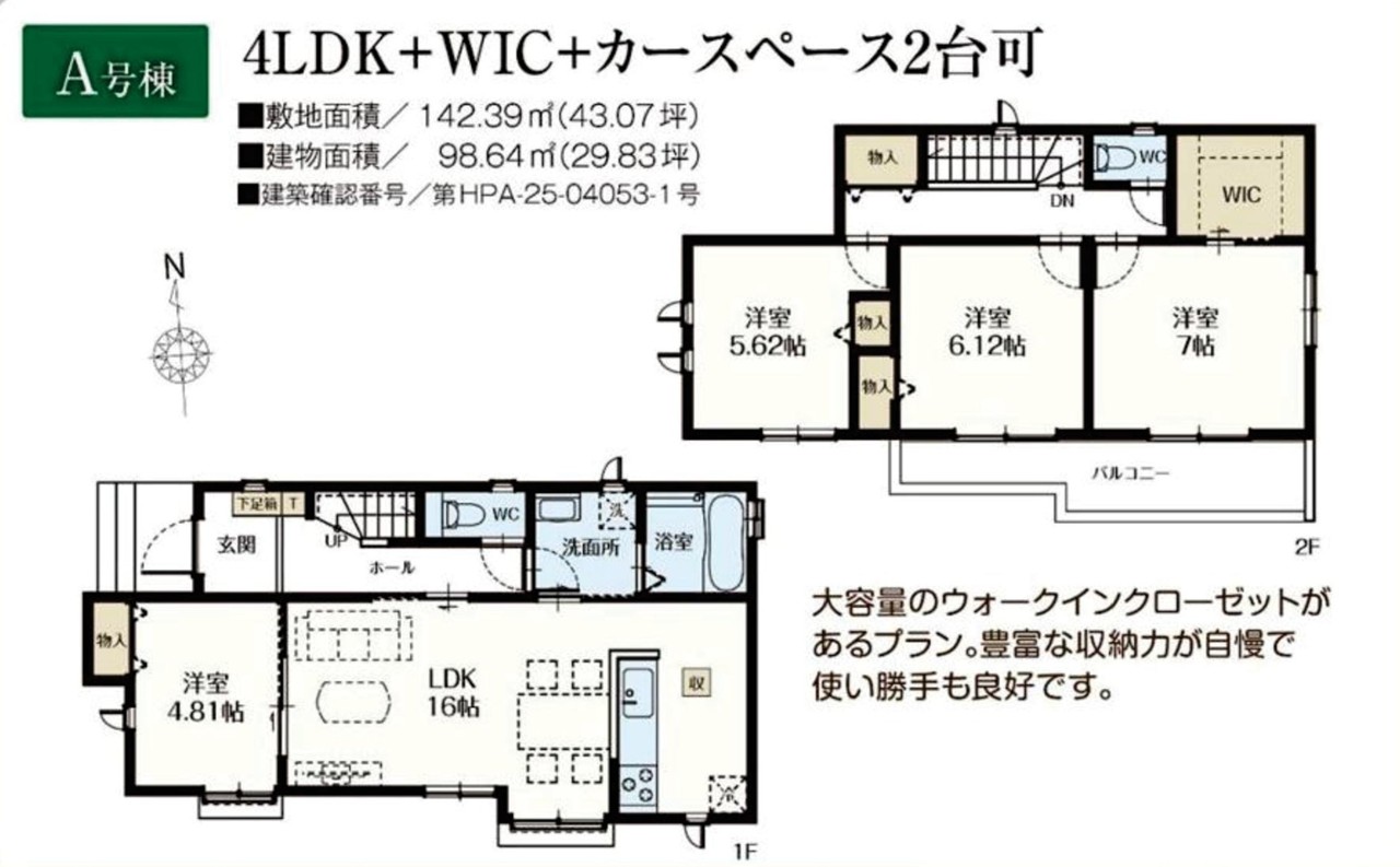 | 建築確認番号 | 第HPA-25-04053-1号 | 駐車スペース | 2台(カースペース:並列) |