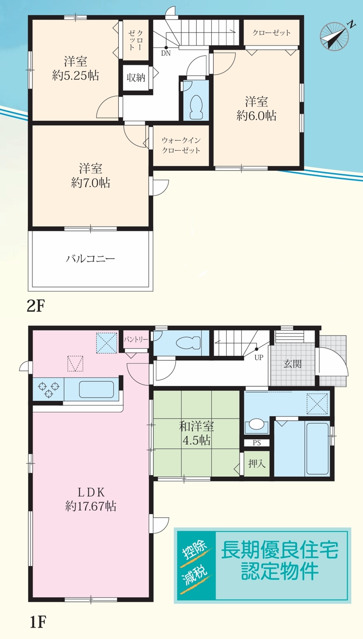 | 間取 | 4LDK (LDK17.67帖、和室4.5帖、洋室7帖、洋室6帖、洋室5.25帖) | ||