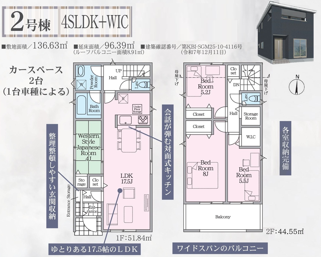 | 建築確認番号 | 第KBI-SGM25-10-4116号 | 駐車スペース | 2台(カースペース) |