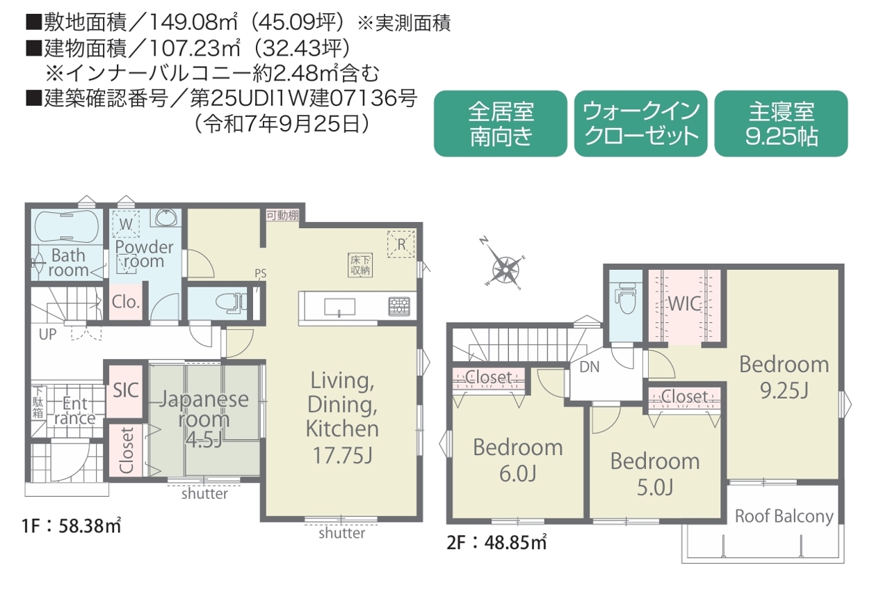 | 建築確認番号 | 第25UDI1W建07136号 | 駐車スペース | 2台(カースペース:並列) |