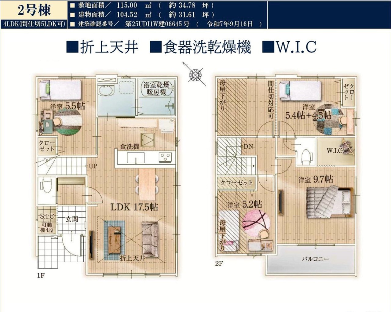 | 建築確認番号 | 第25UDI1W建06645号 | 駐車スペース | 2台(カースペース:並列) |