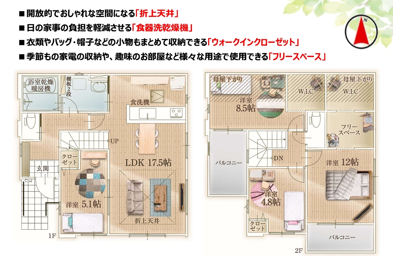 | 間取 | 4LDK (LDK17.5帖、洋室5.1帖、洋室12帖、洋室8.5帖、洋室4.8帖) | ||