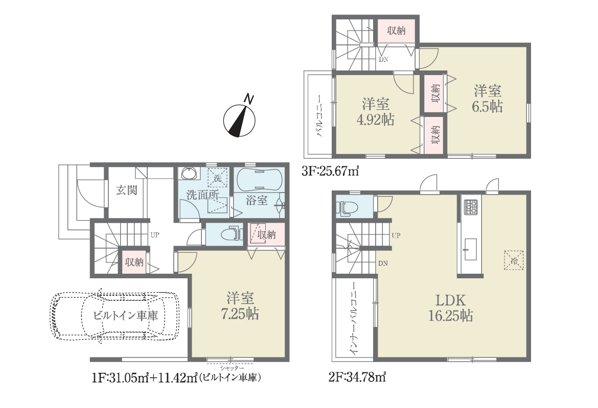 | 建物面積 | 102.92m² 実測 | ||