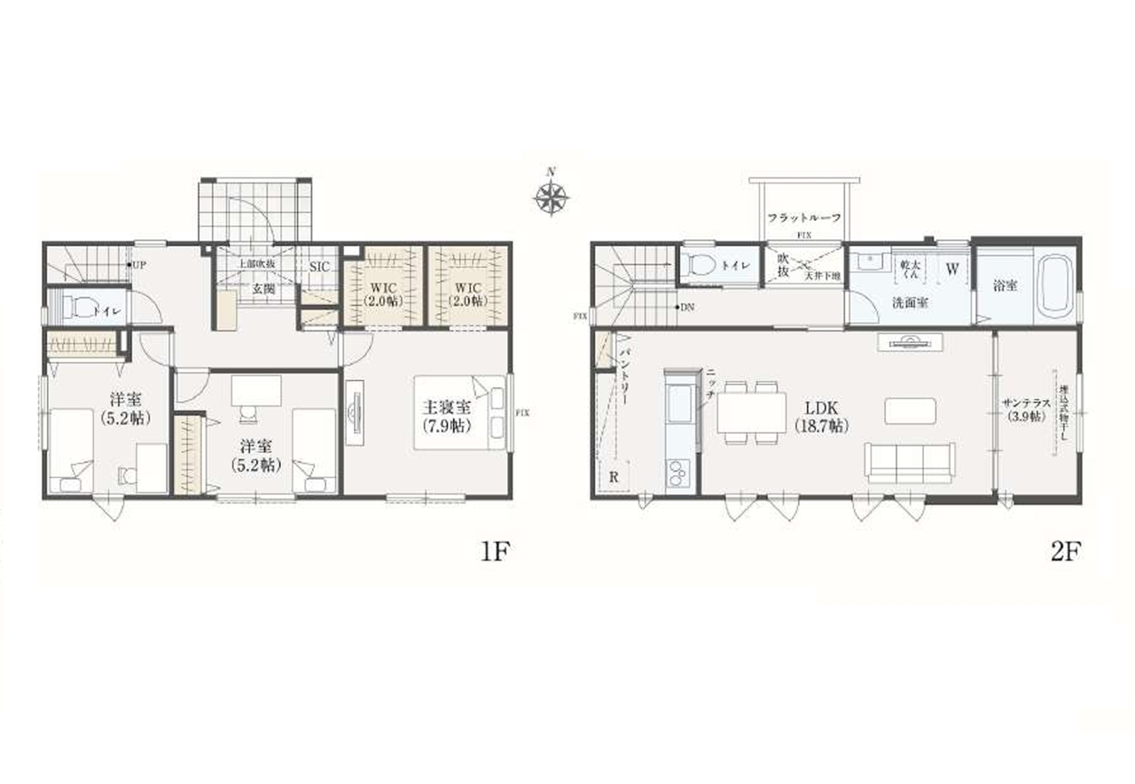 | 間取 | 3LDK (洋室7.9帖、洋室5.2帖、洋室5.2帖、LDK18.7帖) | ||