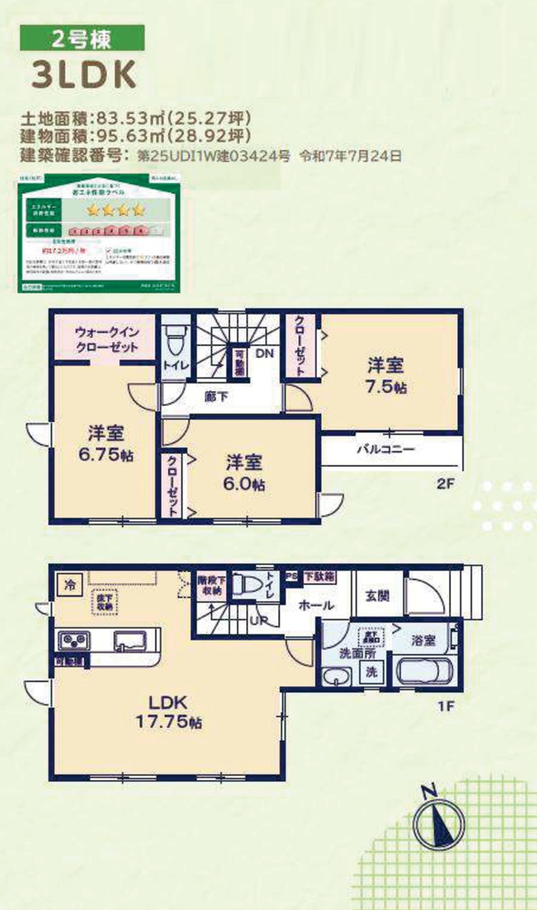 | 建築確認番号 | 第25UDI1W建03423号、他 | 駐車スペース | 1台(カースペース) |