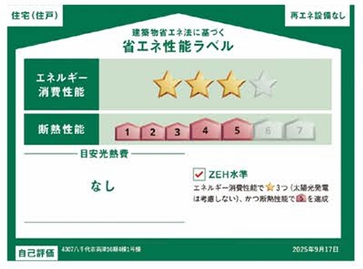 | 省エネ性能表示 | エネルギー消費性能:★★ 断熱性能:5段階 |