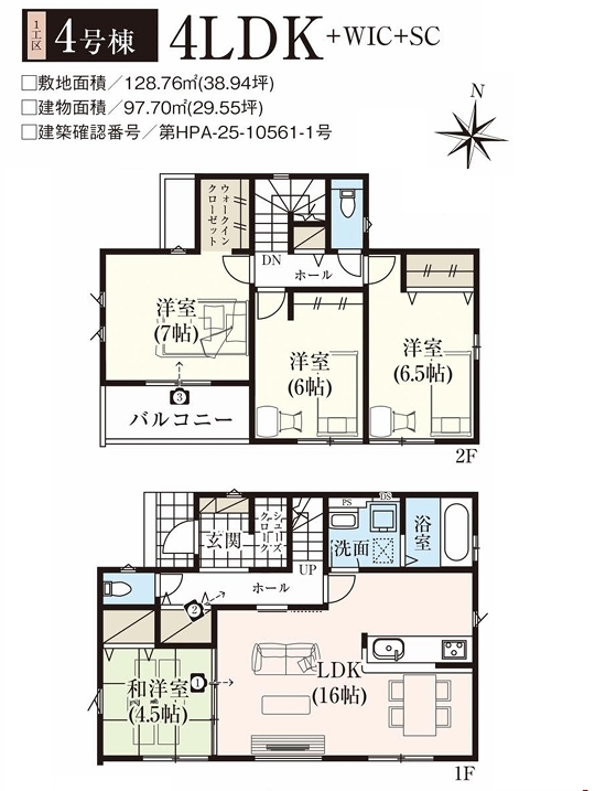 | 土地面積 | 128.76m² 実測 | ||