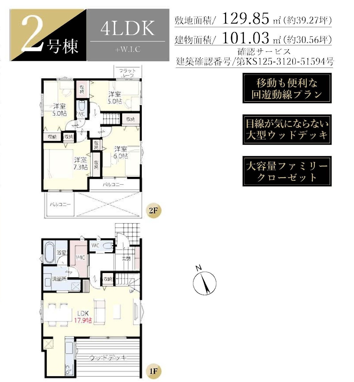| 建築確認番号 | 第KSI125-3120-51593号、他 | 駐車スペース | 2台(カースペース) |