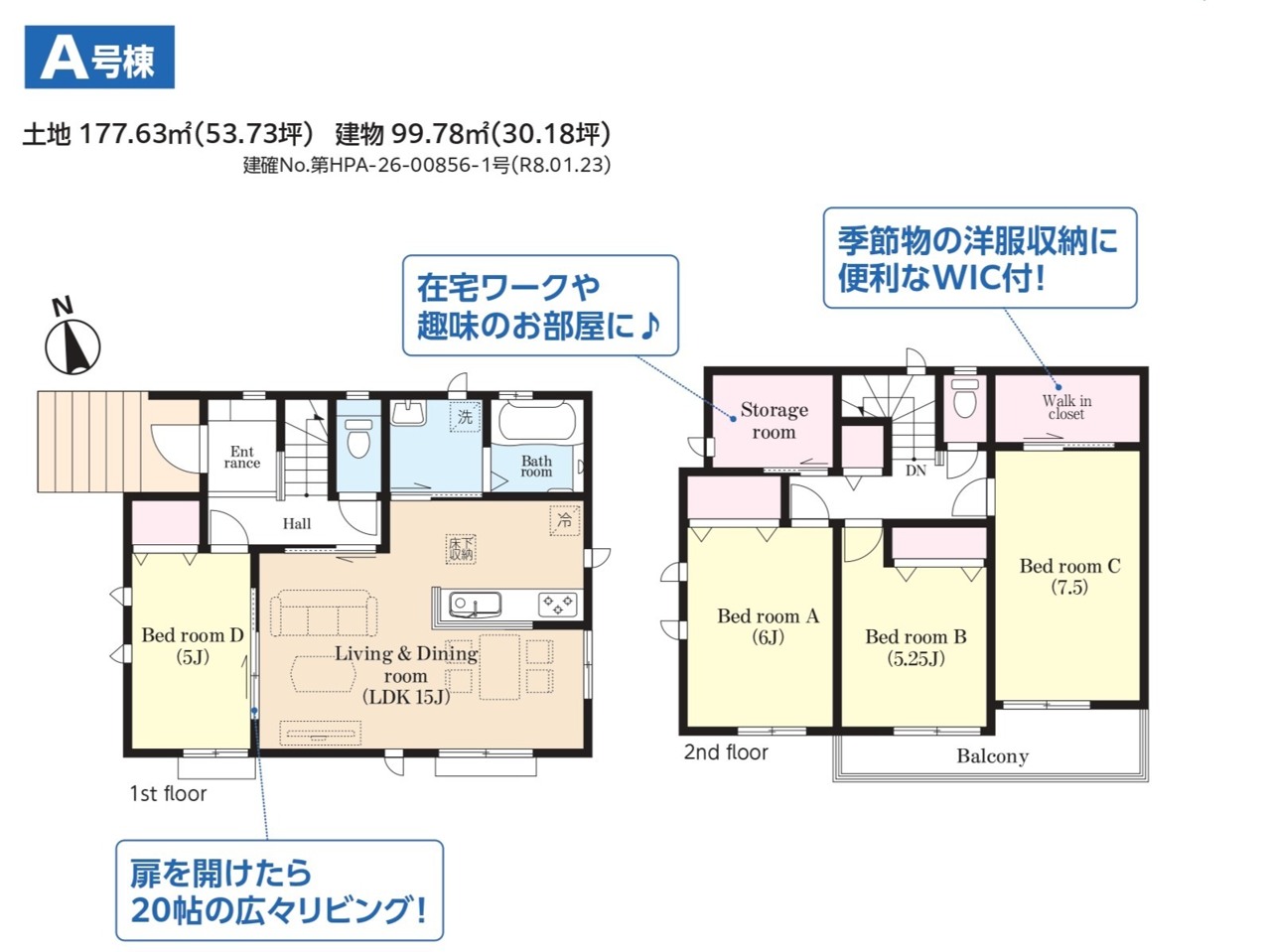 | 建築確認番号 | 第HPA-26-00856-1号 | 駐車スペース | 3台以上(カースペース:並列) |