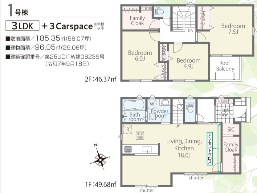 | 間取 | 3LDK (LDK18帖、洋室7.5帖、洋室6帖、洋室4.9帖) | ||