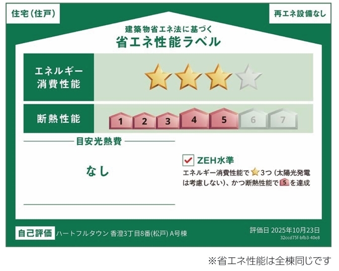 | 省エネ性能表示 | エネルギー消費性能:★★★ 断熱性能:5段階 |