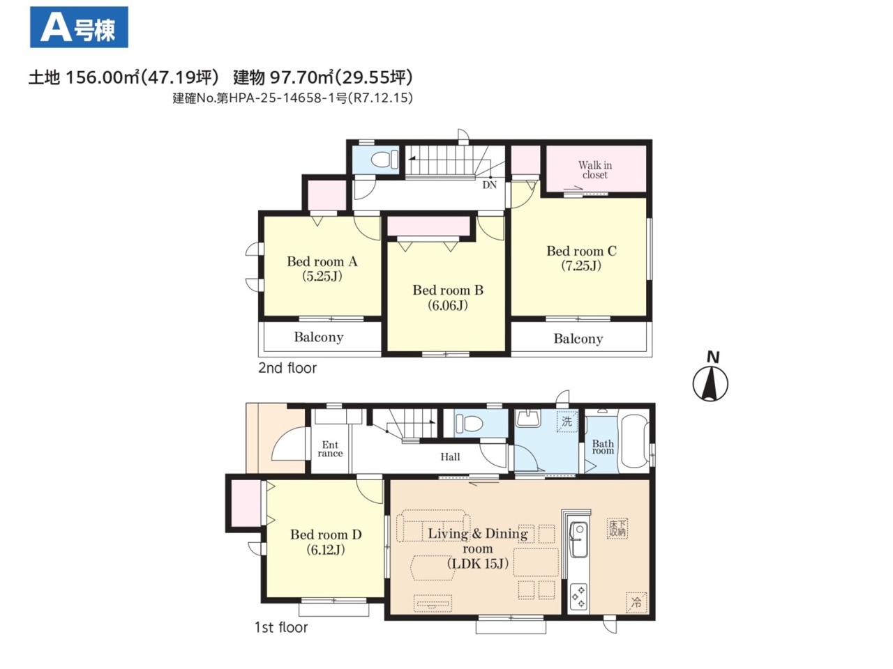 | 建築確認番号 | 第HPA-25-14658-1号 | 駐車スペース | 2台可(カースペース:並列) |