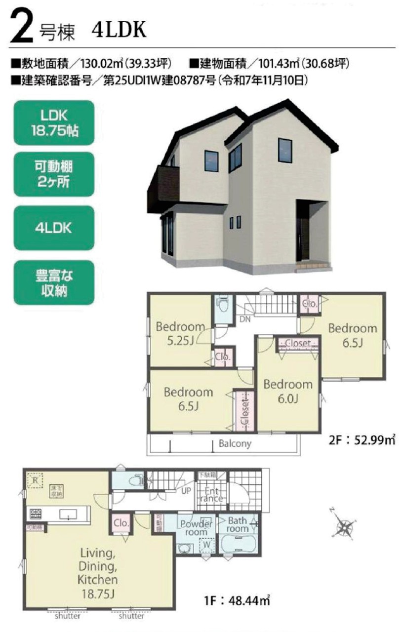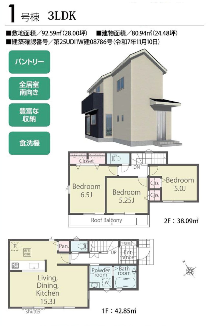 | 建築確認番号 | 第25UDI1W08786号、他 | 駐車スペース | 2台(カースペース:並列) |