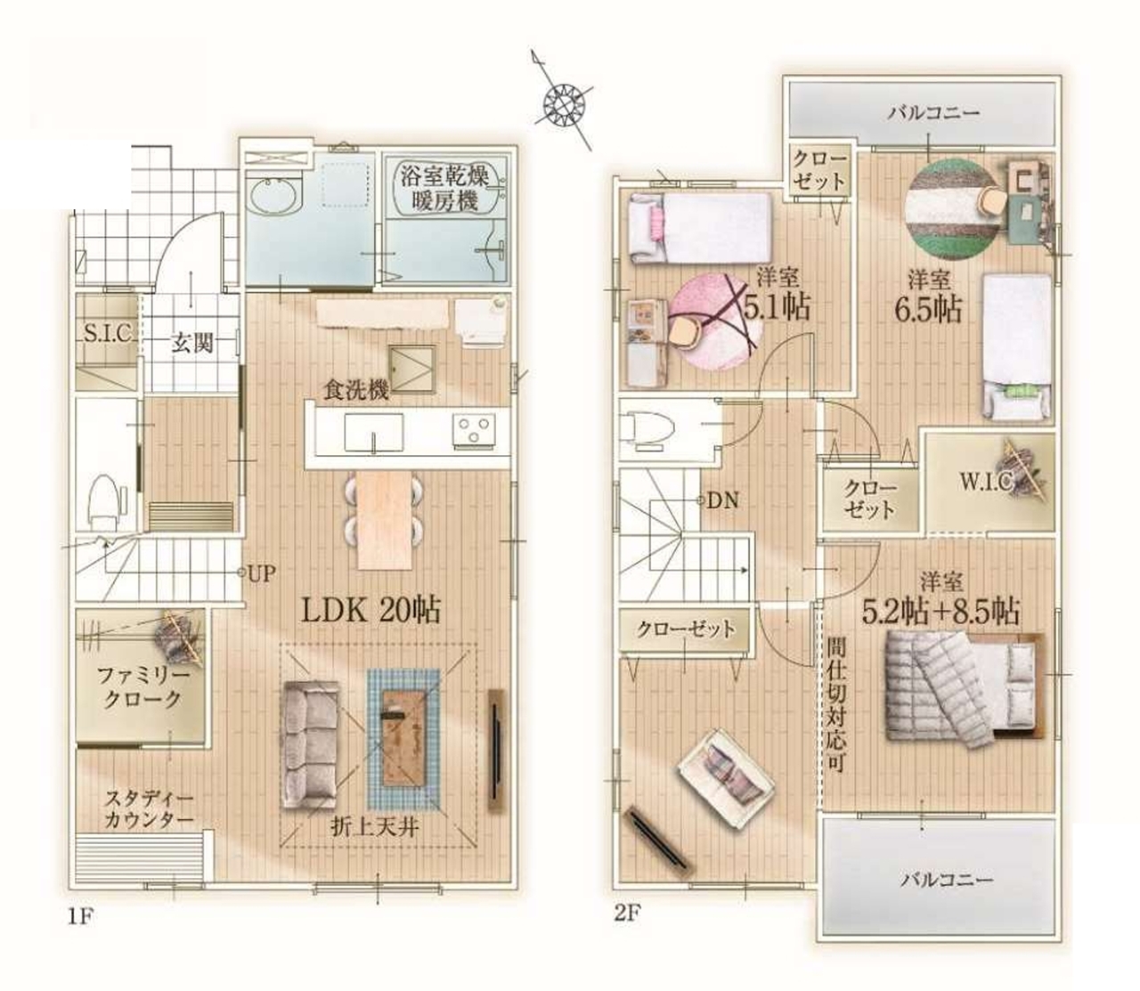 - ※完成予想図はいずれも外構、植栽、外観等実際のものとは多少異なることがあります。