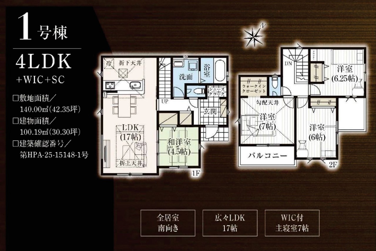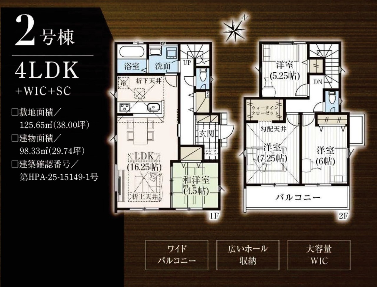 | 建築確認番号 | 第HPA-25-15148-1号、他 | 駐車スペース | 2台(カースペース) |