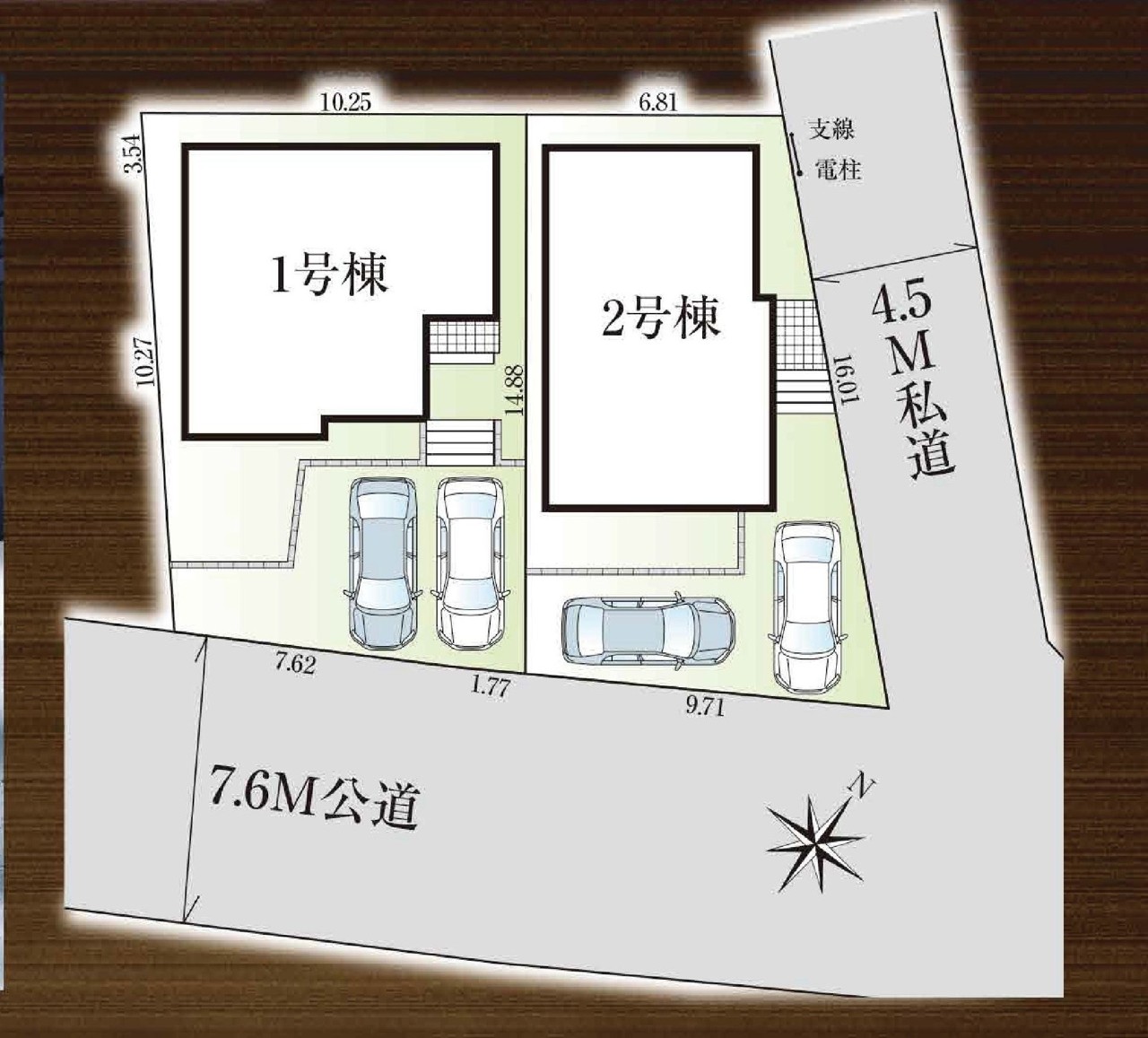 | 接道 | 南東側7.69M公道に接道 北東側4.5M私道に接道 |