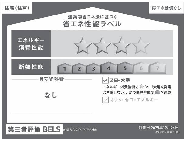 | 省エネ性能表示 | エネルギー消費性能:★★★ 断熱性能:5段階 |