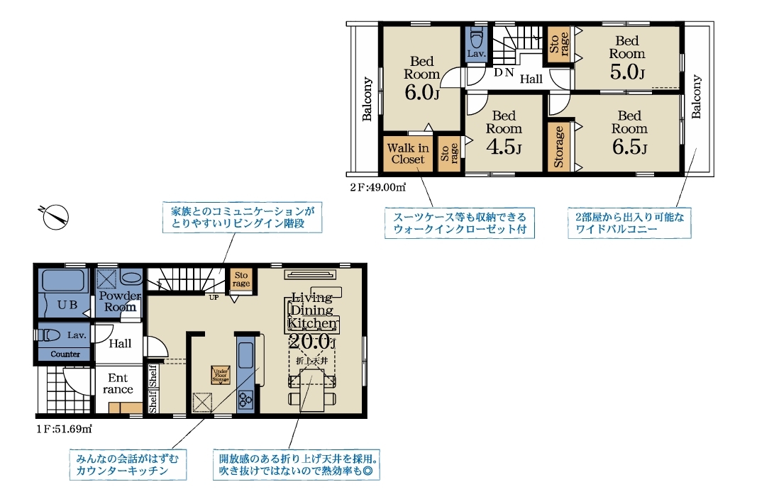 | 間取 | 4LDK (LDK20帖、洋室6帖、洋室4.5帖、洋室6.5帖、洋室6帖) | ||