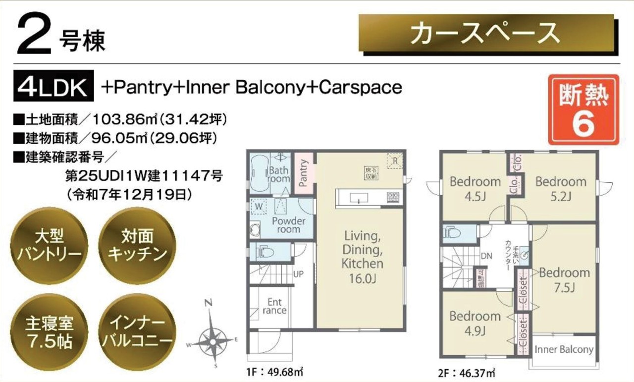 | 建築確認番号 | 第25UDI1W建11147号 | 駐車スペース | 2台(カースペース:並列) |