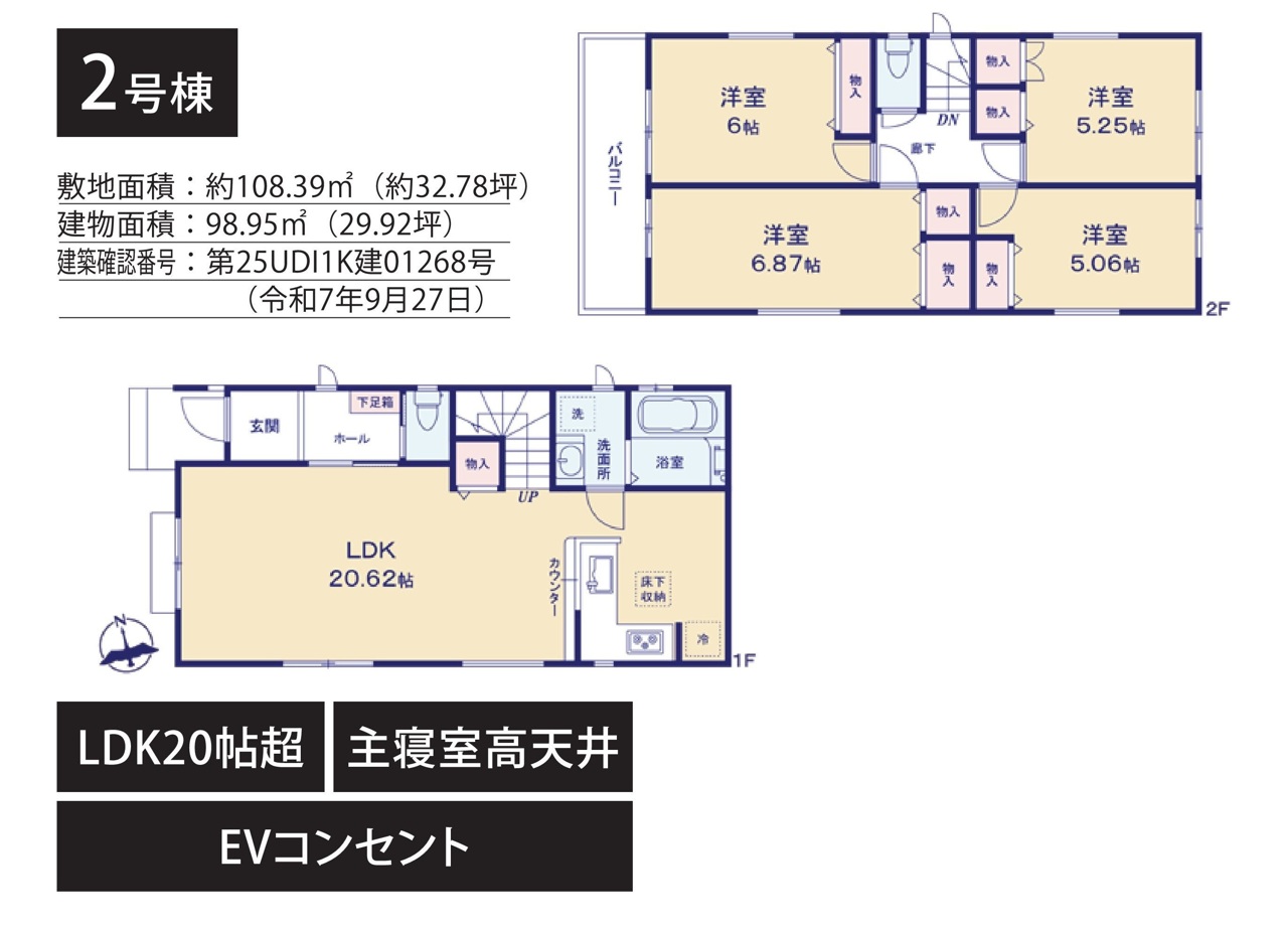 | 建築確認番号 | 第25UDI1K建01267号、他 | 駐車スペース | 2台(カースペース:並列) |
