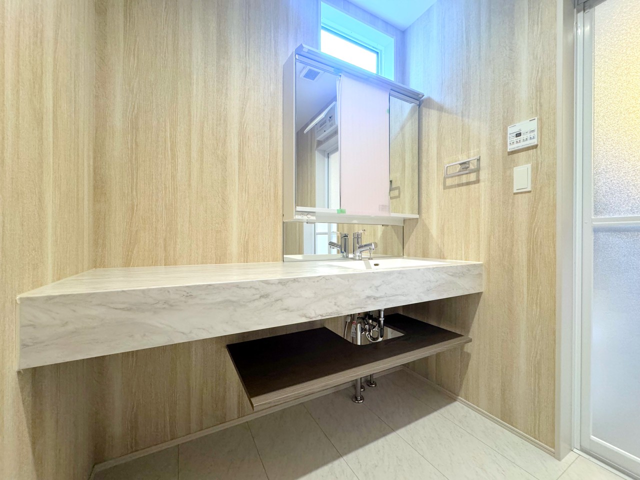 トップボード広めの洗面台で、二人同時の身支度もスムーズ♪