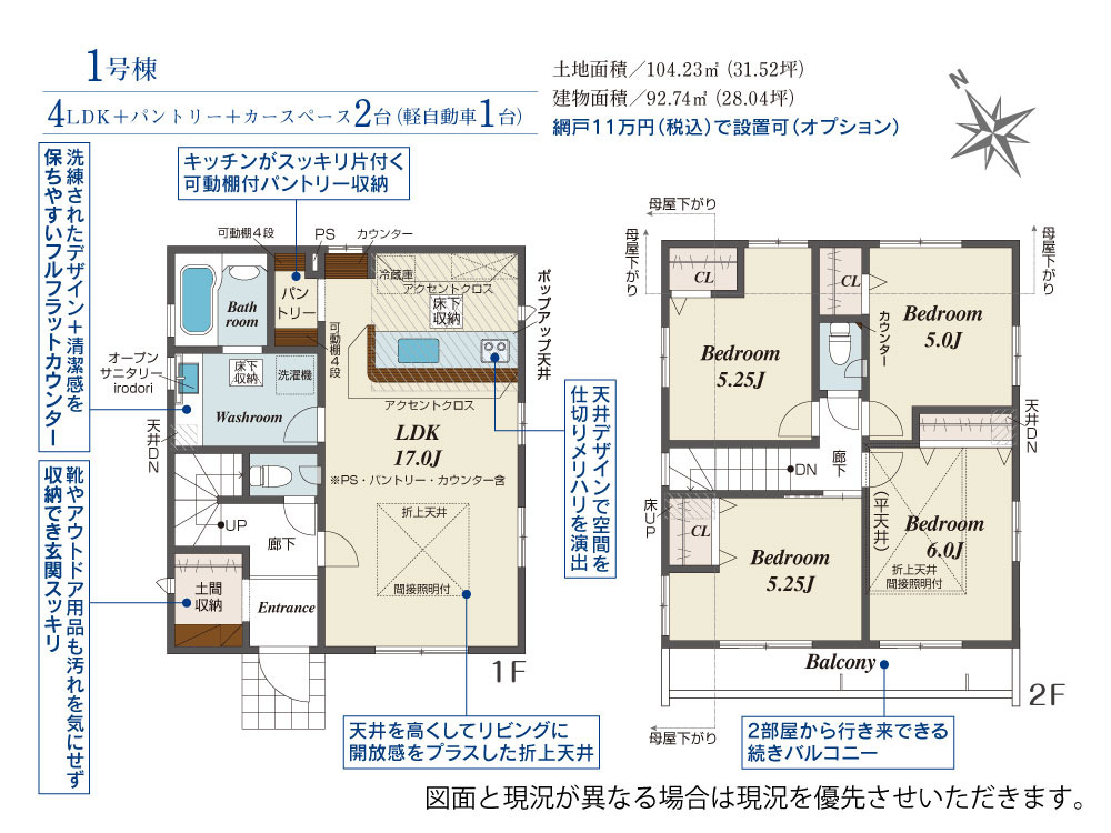 | 建物面積 | 92.74m² ~ 95.04m² 公簿 | ||