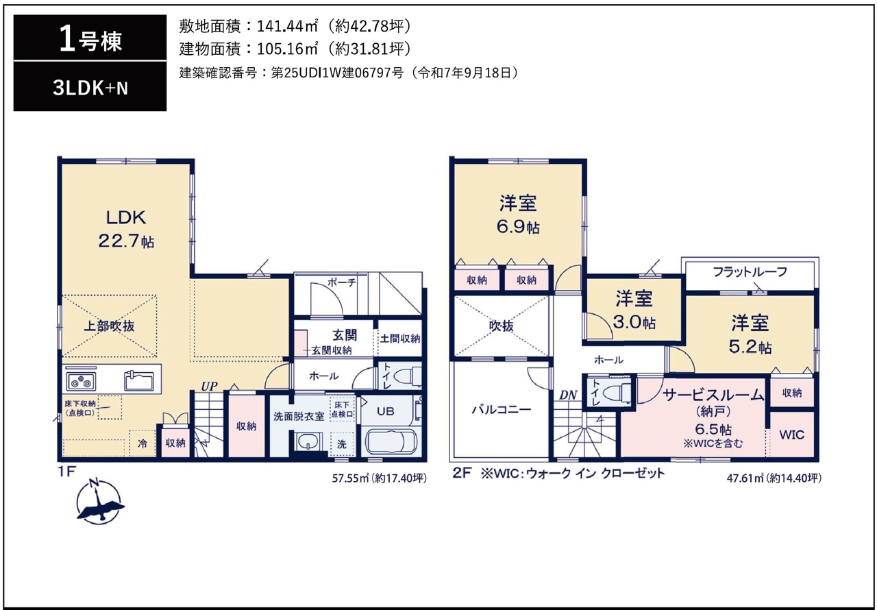 | 建築確認番号 | 第25UDI1W建06797号 | 駐車スペース | 2台(カースペース:並列) |