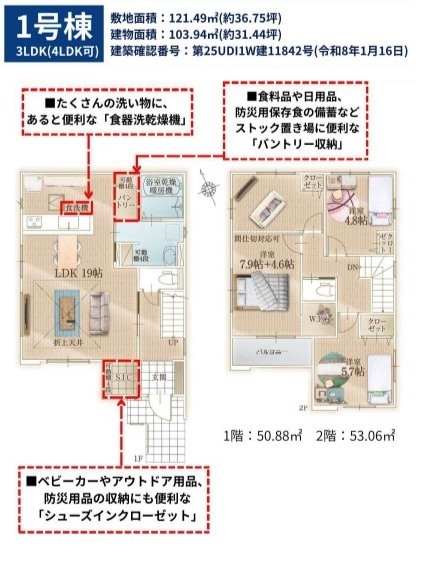 ◇家族構成に応じて4LDKに変更できる間取り(1号棟)♪