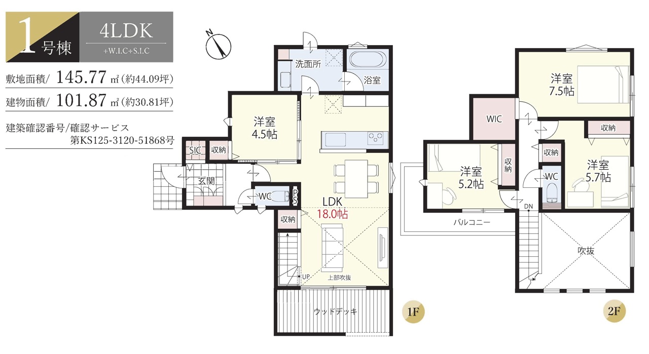 | 建築確認番号 | 第KS125-3120-51868号 | 駐車スペース | 2台(カースペース:並列) |