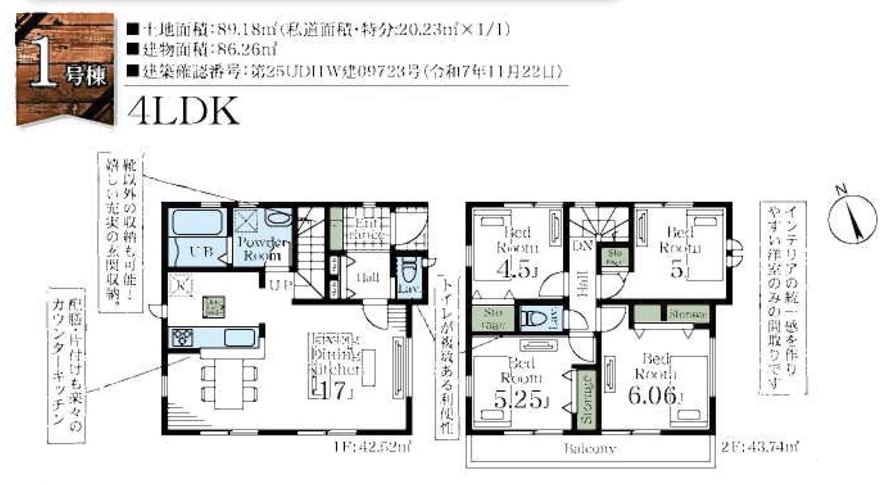 | 建築確認番号 | 第25UDI1W建09723号 | 駐車スペース | 1台(カースペース) |