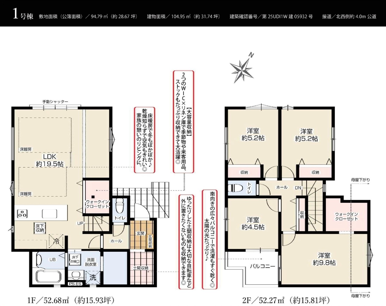 | 建物面積 | 104.95m² 公簿 | ||