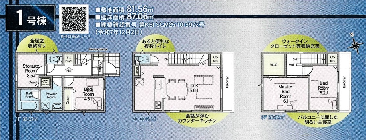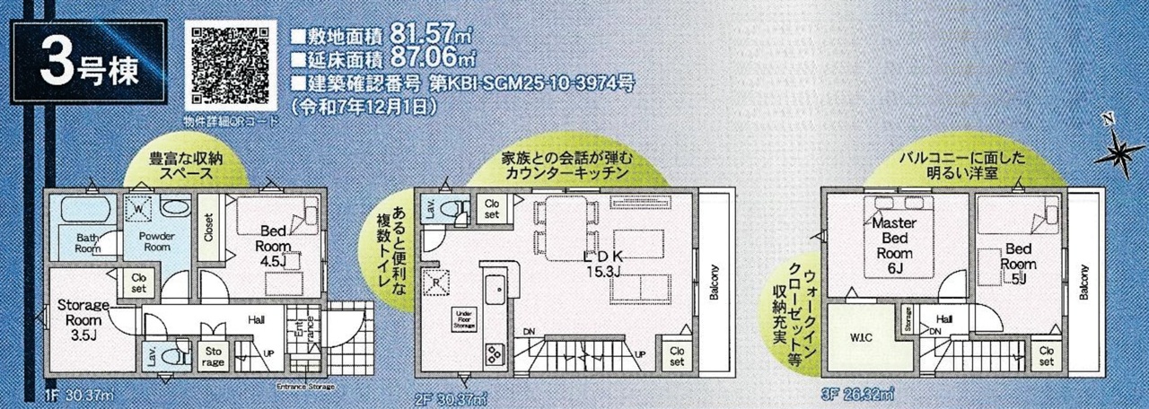 | 建築確認番号 | 第KBI-SGM25-10-3972号、他 | 駐車スペース | 1台(カースペース) |