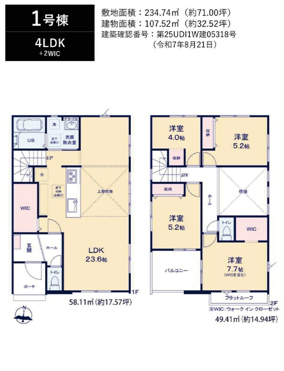 | 建築確認番号 | 第25UDI1W建05318号、他 | 駐車スペース | 2台(カースペース) |