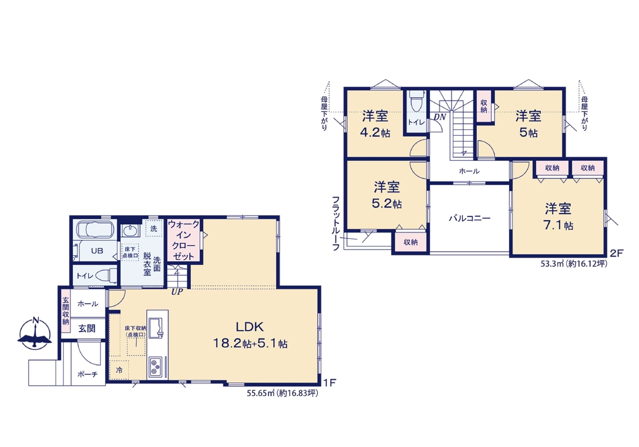 | 間取 | 4LDK (LDK20帖、洋室6.5帖、洋室6帖、洋室5.25帖、洋室5.25帖) | ||