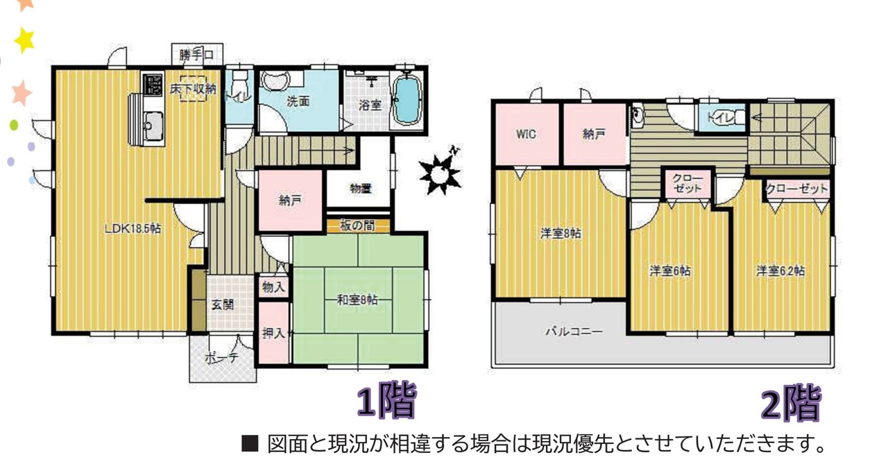 | 間取 | 4LDK (LDK18.5帖、和室8帖、洋室8帖、洋室6.2帖、洋室6帖) | ||