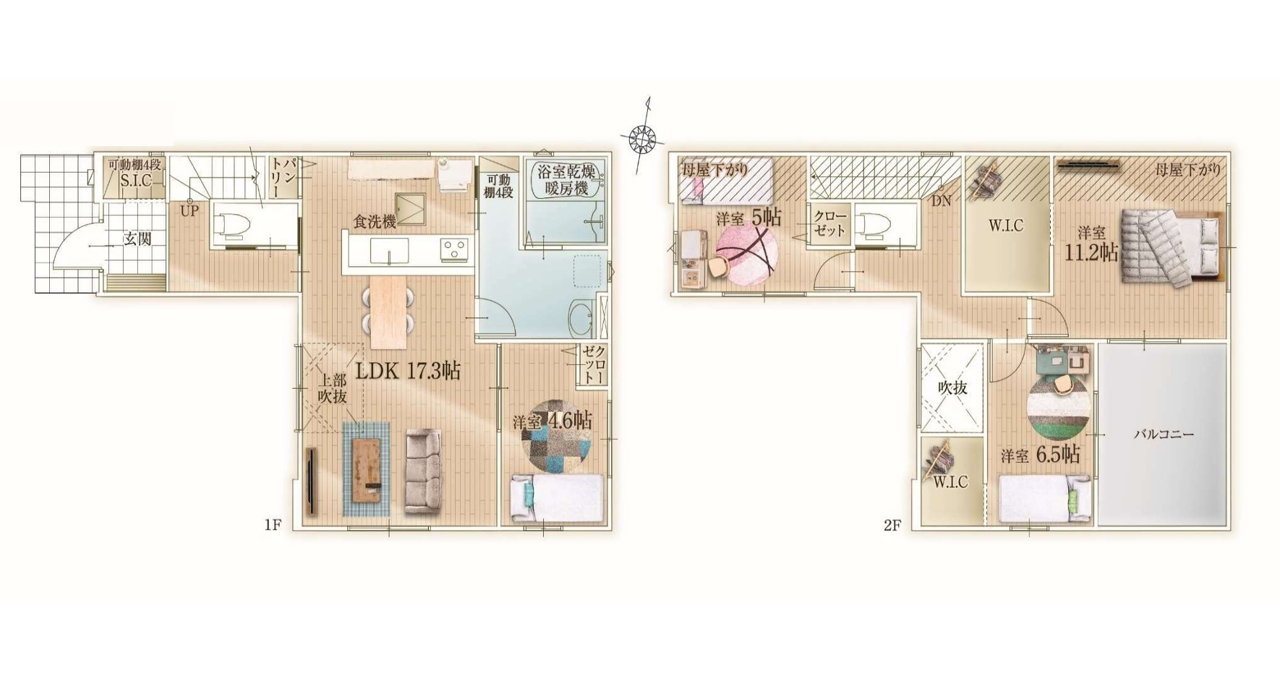 | 間取 | 4LDK (LDK17.3帖、洋室4.6帖、洋室11.2帖、洋室6.5帖、洋室5帖) | ||