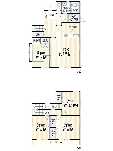 | 間取 | 4SLDK (LDK15帖、和室6帖、洋室8帖、洋室6帖、洋室6.3帖) | ||