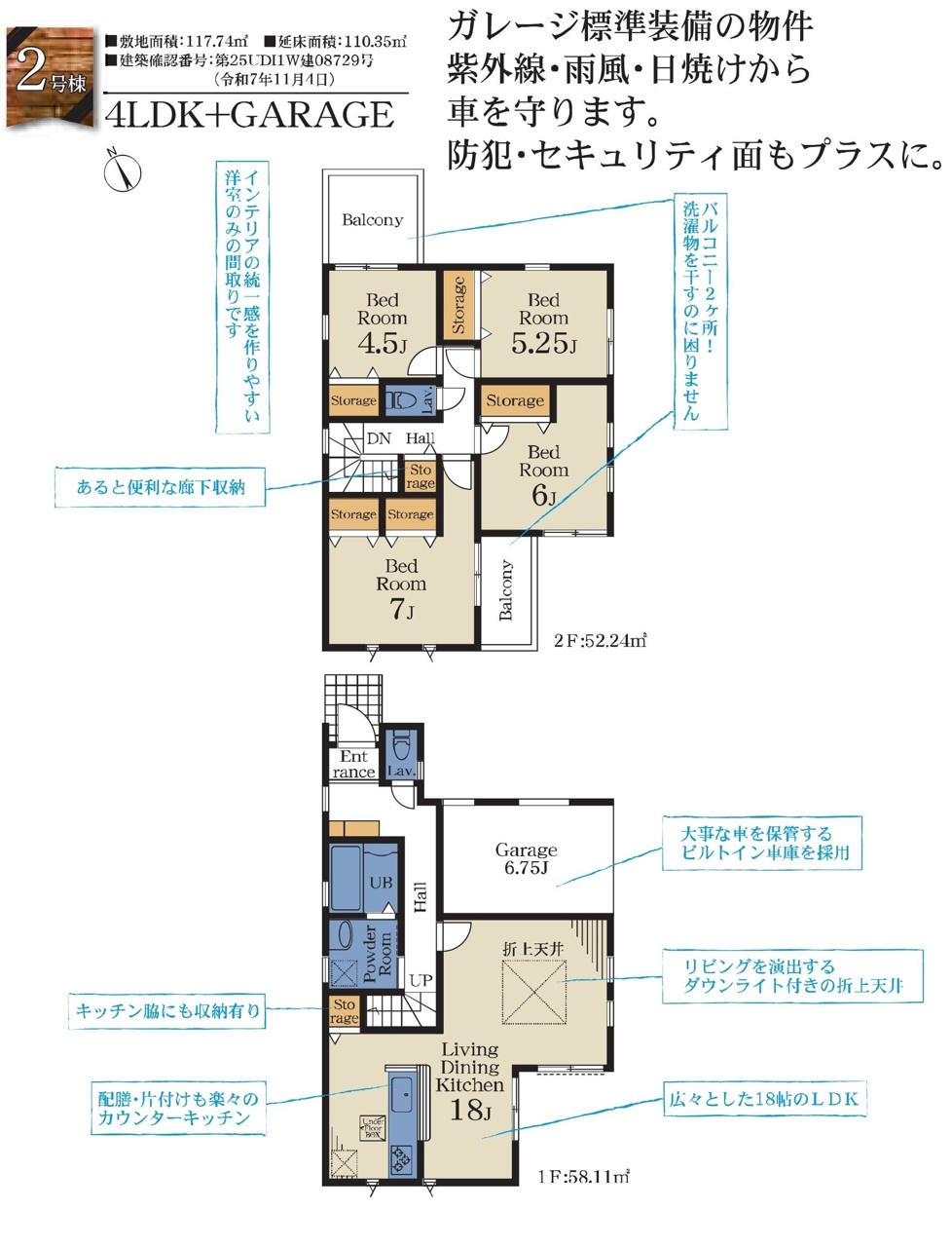 | 建築確認番号 | 第25UDI1W建08728号、他 | 駐車スペース | 2台(カースペース:並列) |