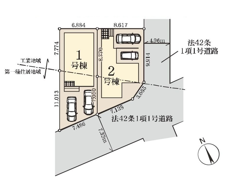 | 接道 | 南側7.33M公道に接道 東側4.96M公道に接道 |