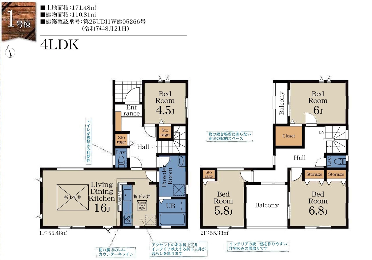 | 建築確認番号 | 第25UDI1W建05266号 | 駐車スペース | 2台(カースペース:並列) |