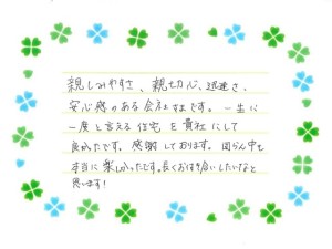 一生に一度と言える住宅を貴社にして良かったです。感謝しております。