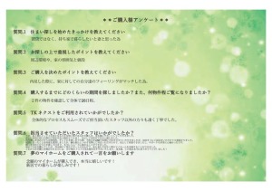 - 念願のマイホームが購入でき、本当に嬉しいです!新居での暮らしが楽しみです!