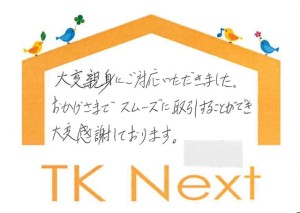 この度は数ある不動産会社の中から弊社をお選び頂き誠にありがとうございました。 又、お忙しい中感謝のお言葉頂き重ねて御礼申し上げます。 お住まいになられてからも些細なことでも遠慮なくお尋ね下さいませ。 (お部屋が綺麗になったらご招待しないとね) W様からのお声がけはとても嬉しかったです。 健やかな暮らしを心より願っております。