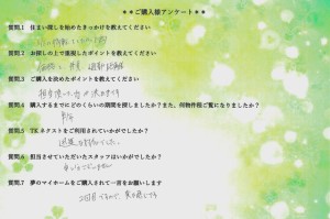 - 夢のマイホームをご購入されて一言をお願いします